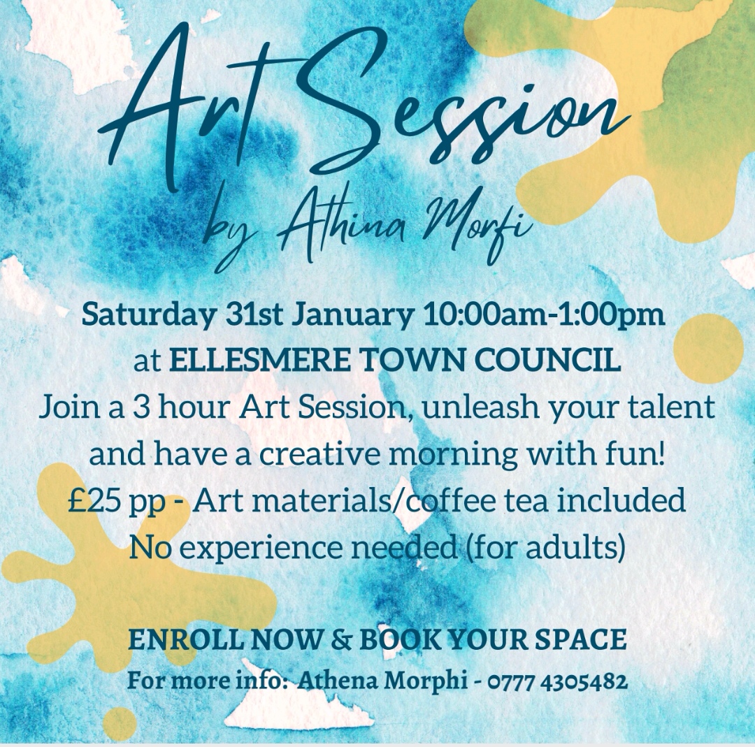 Art Session by Athina MorfiSaturday 29th November 9:45am – 12:45pm Ellesmere Town Hall Enroll to book your space 07774 305 482October 20, 2025Read News Article