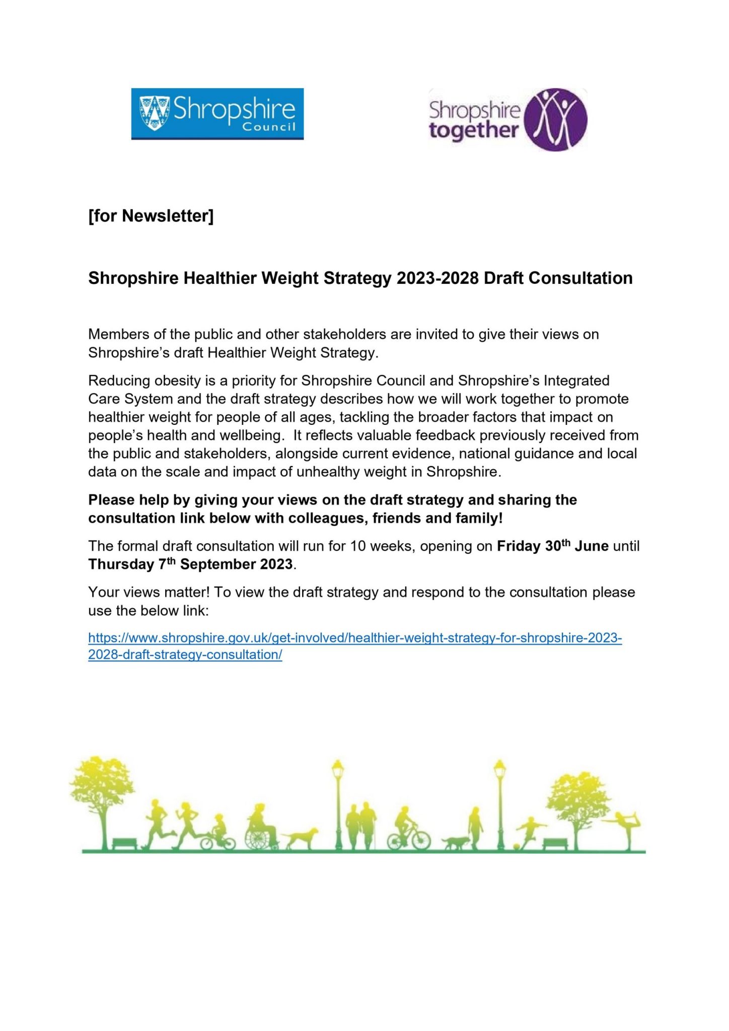 Healthier Weight Strategy Draft Consultation The draft Healthier Weight Strategy has been approved by the Health & Wellbeing Board (HWBB)…July 5, 2023Read News Article