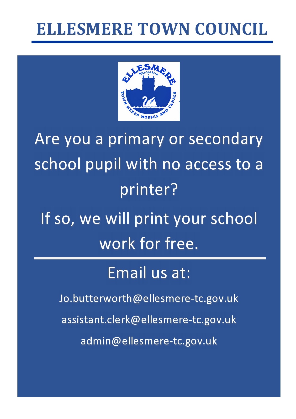 Are you a primary or secondary school pupil with no access to a printer? If so, we will print your…
