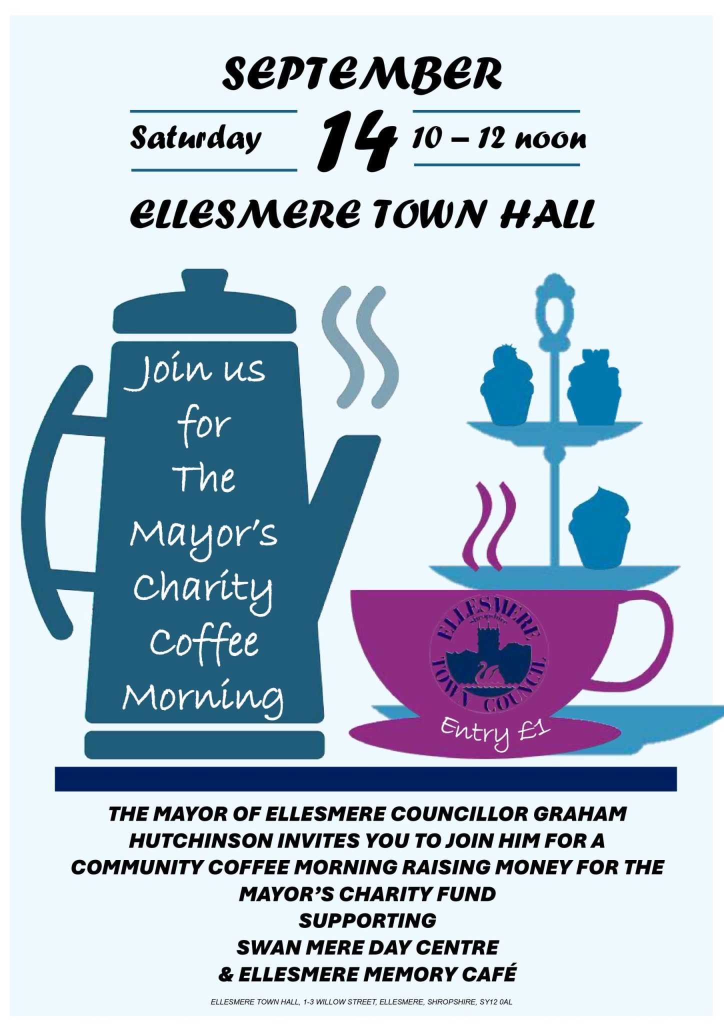 Mayor’s Charity Coffee MorningMayor Graham Hutchinson invites you to join him for coffee and cake in support of his charities, Swan Mere Day…August 19, 2024Read News Article